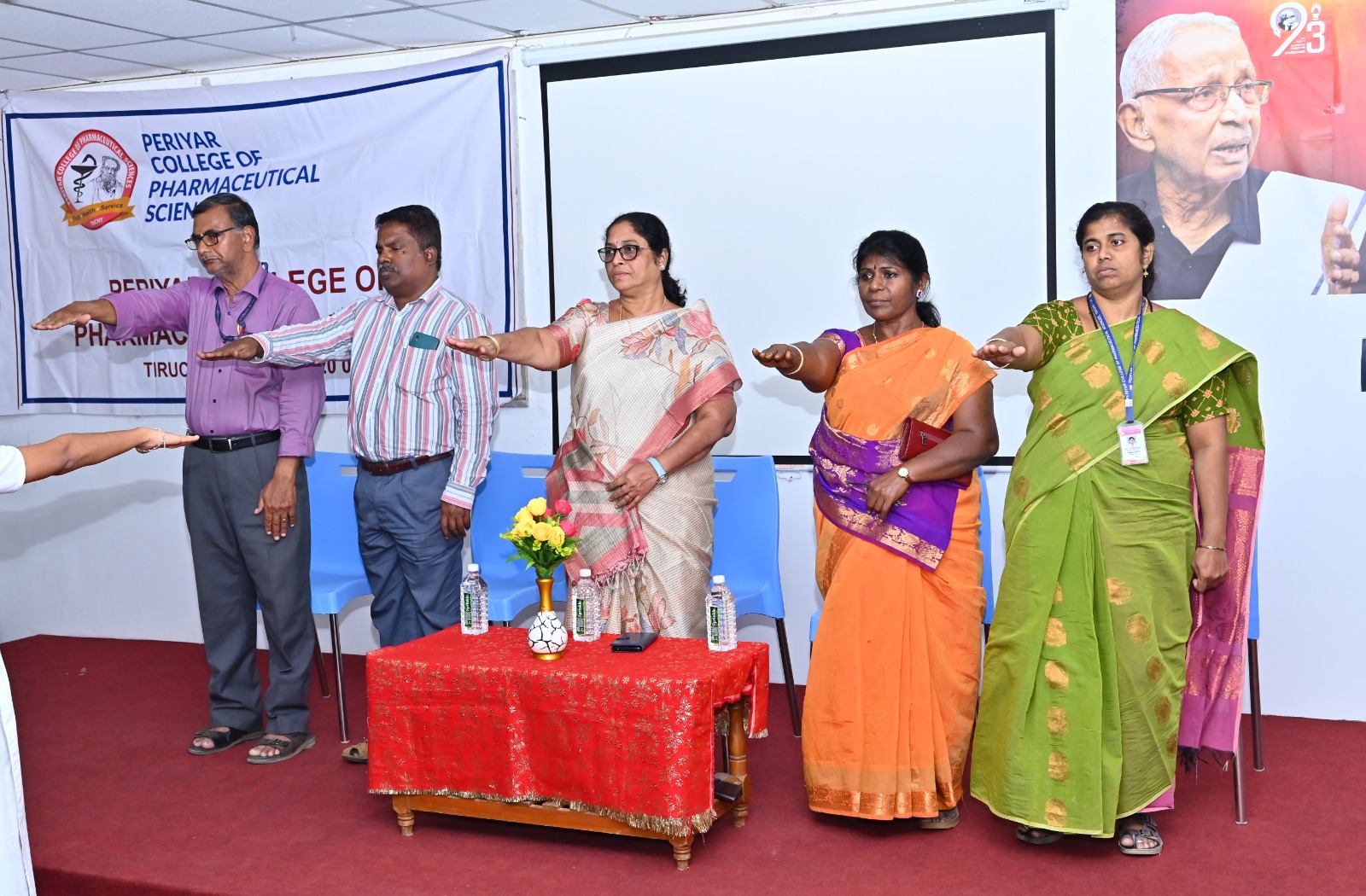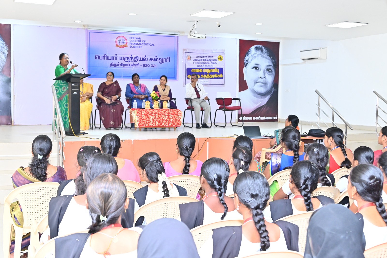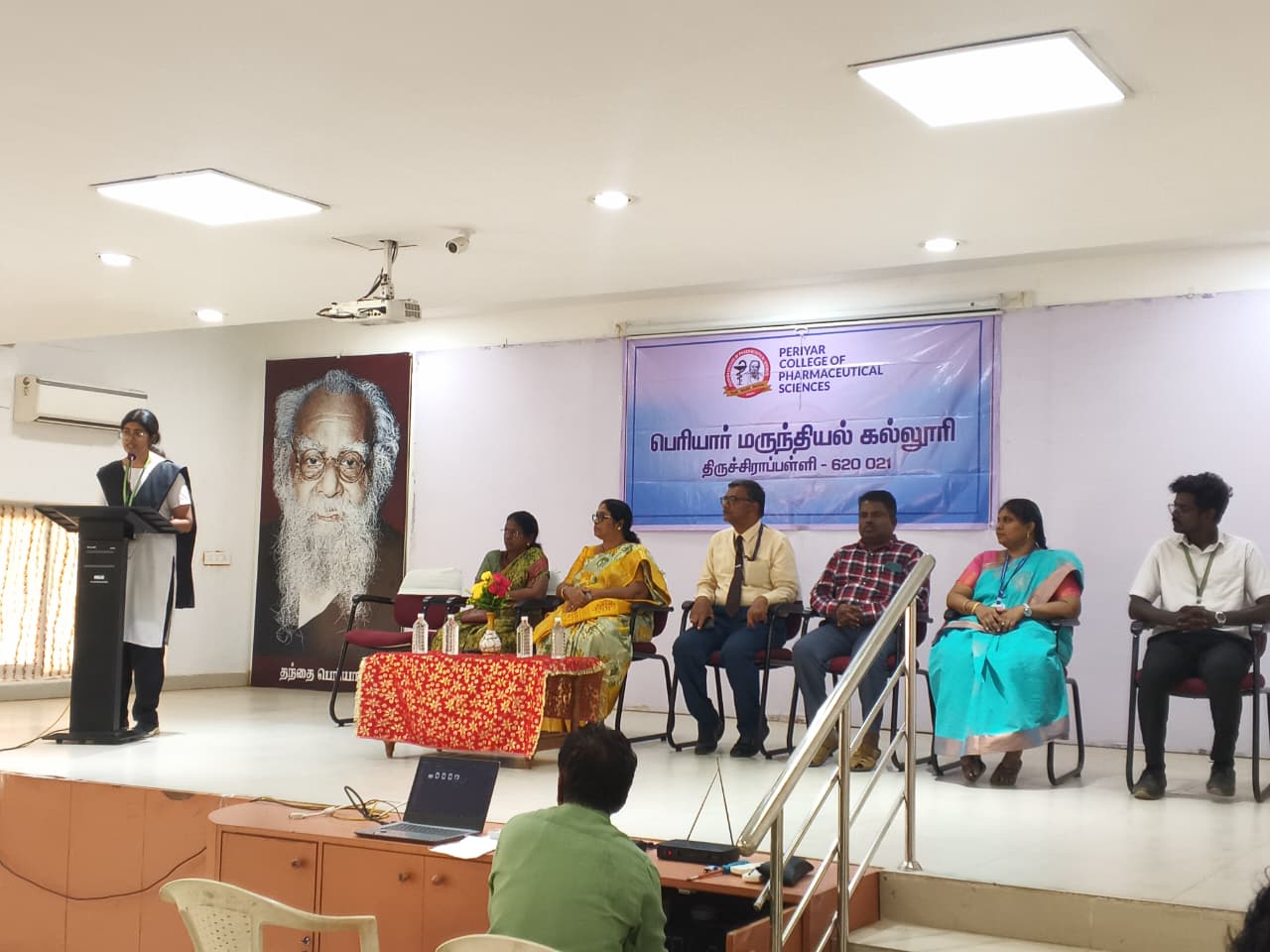 After THANTHAI PERIYAR and ANNAI MANIAMMAIYAR, their illustrious successor Thiru K.VEERAMANI M.A.,B.L., has taken up the Herculean task of ushering young women into Pharmacy education and to a new era of scientific temperament by leading this institution exclusively for women in the whole World.