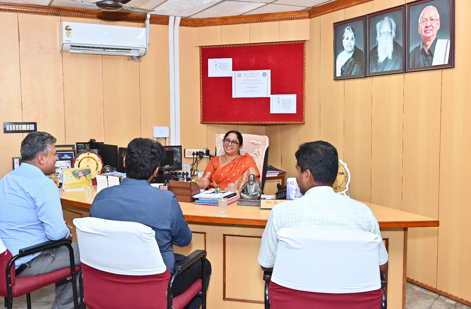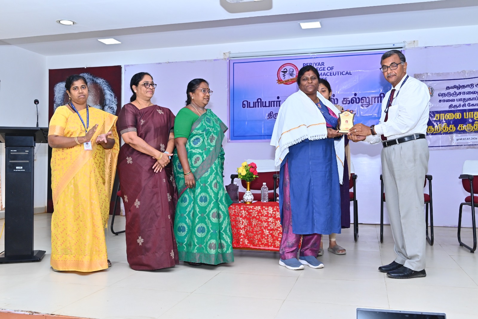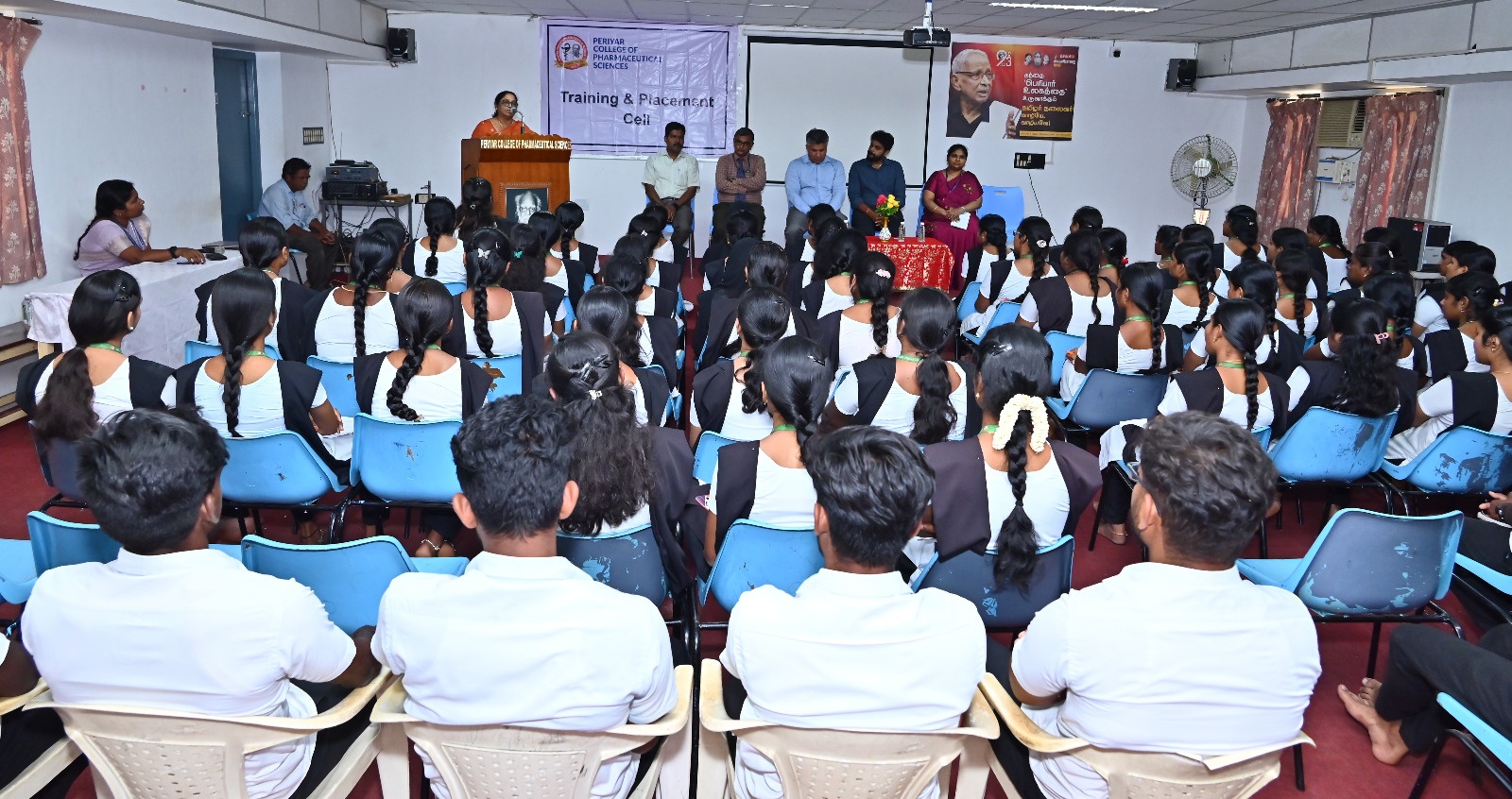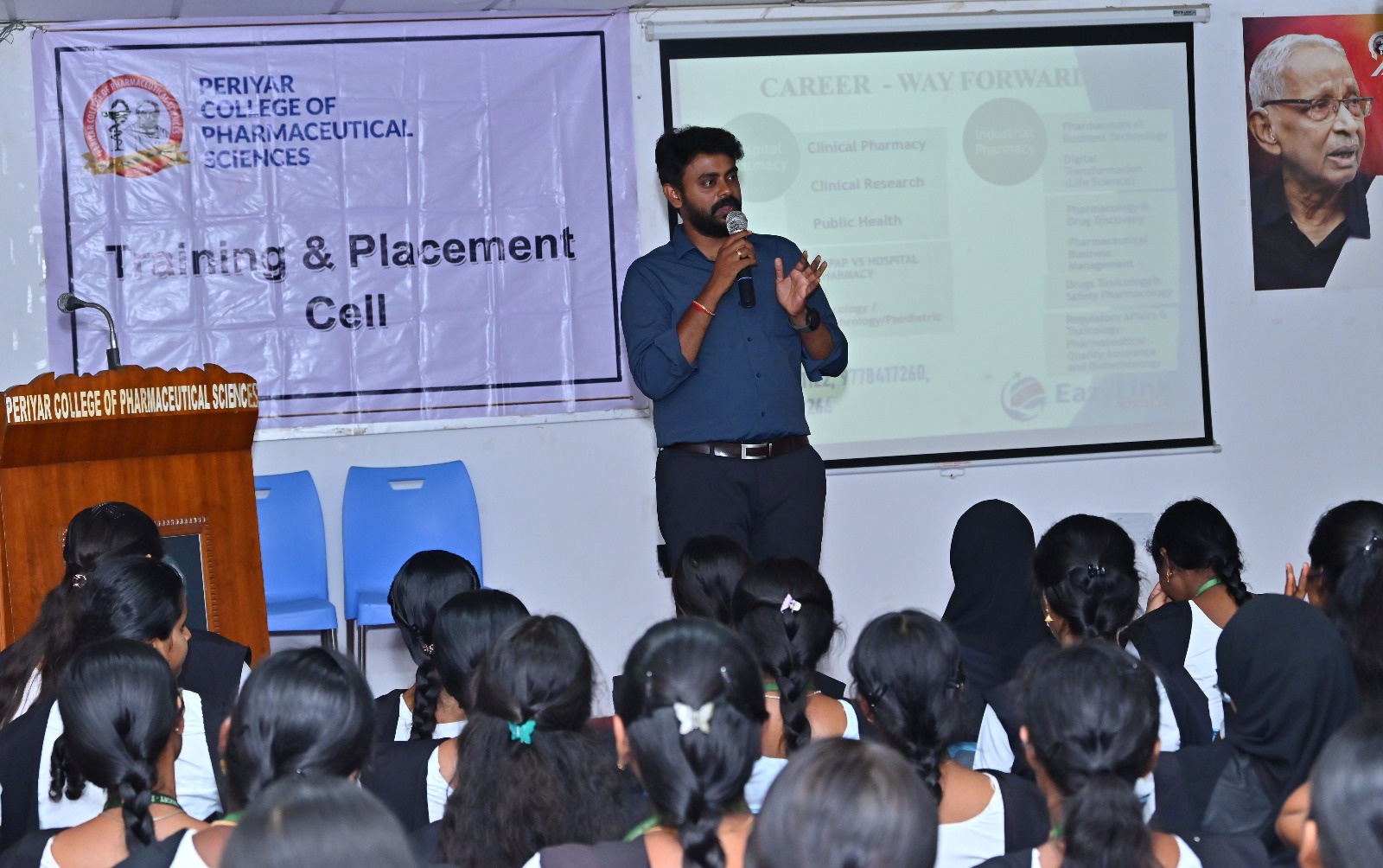 After THANTHAI PERIYAR and ANNAI MANIAMMAIYAR, their illustrious successor Thiru K.VEERAMANI M.A.,B.L., has taken up the Herculean task of ushering young women into Pharmacy education and to a new era of scientific temperament by leading this institution exclusively for women in the whole World.