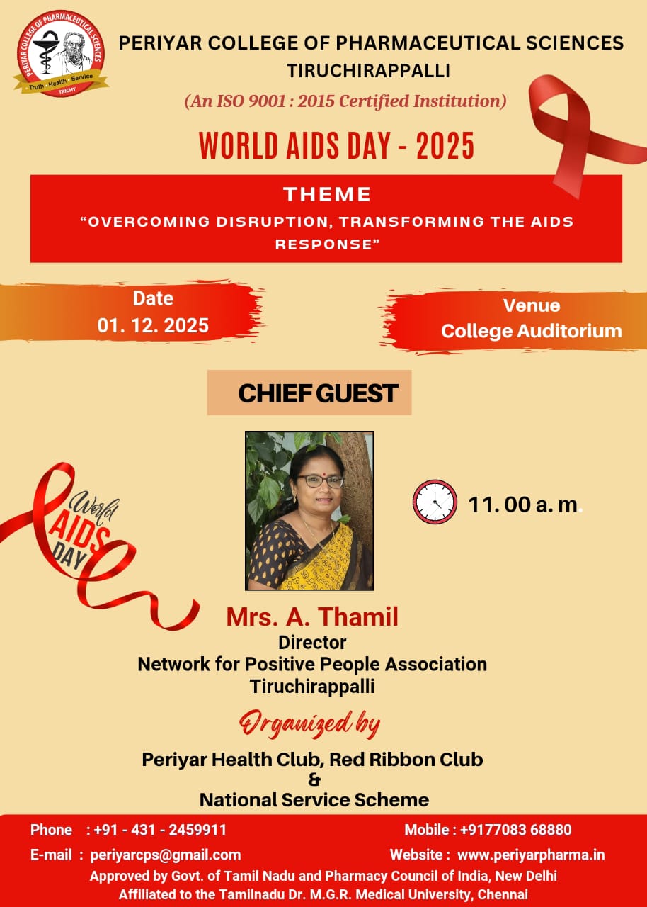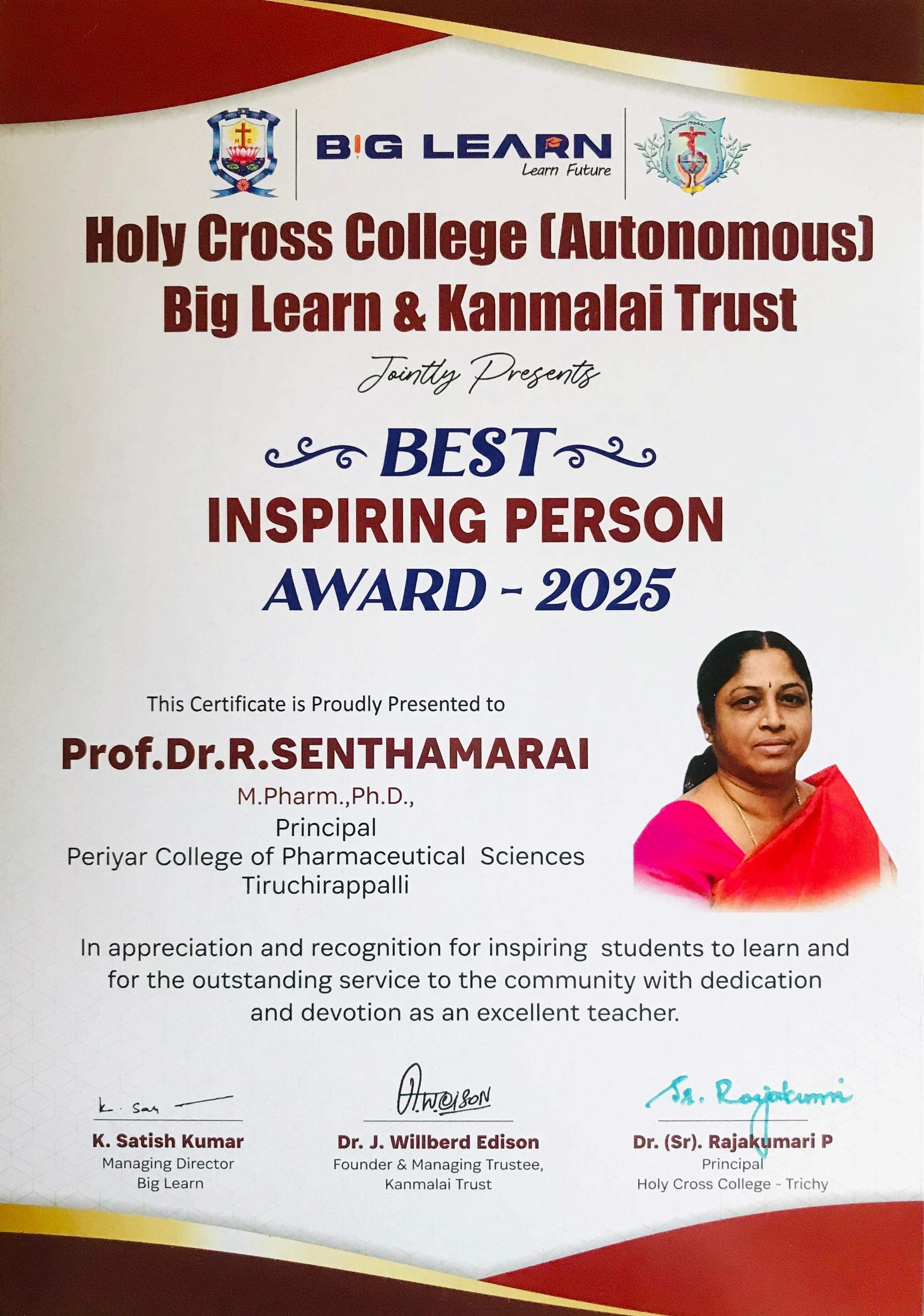 The Periyar College of Pharmaceutical Sciences for Girls now renamed as "Periyar College of Pharmaceutical Sciences" named after the great social reformer THANTHAI PERIYAR made its inception on 17th April 1982 at Tiruchirapalli by the Periyar Maniammai Educational and Charitable Society, Chennai.