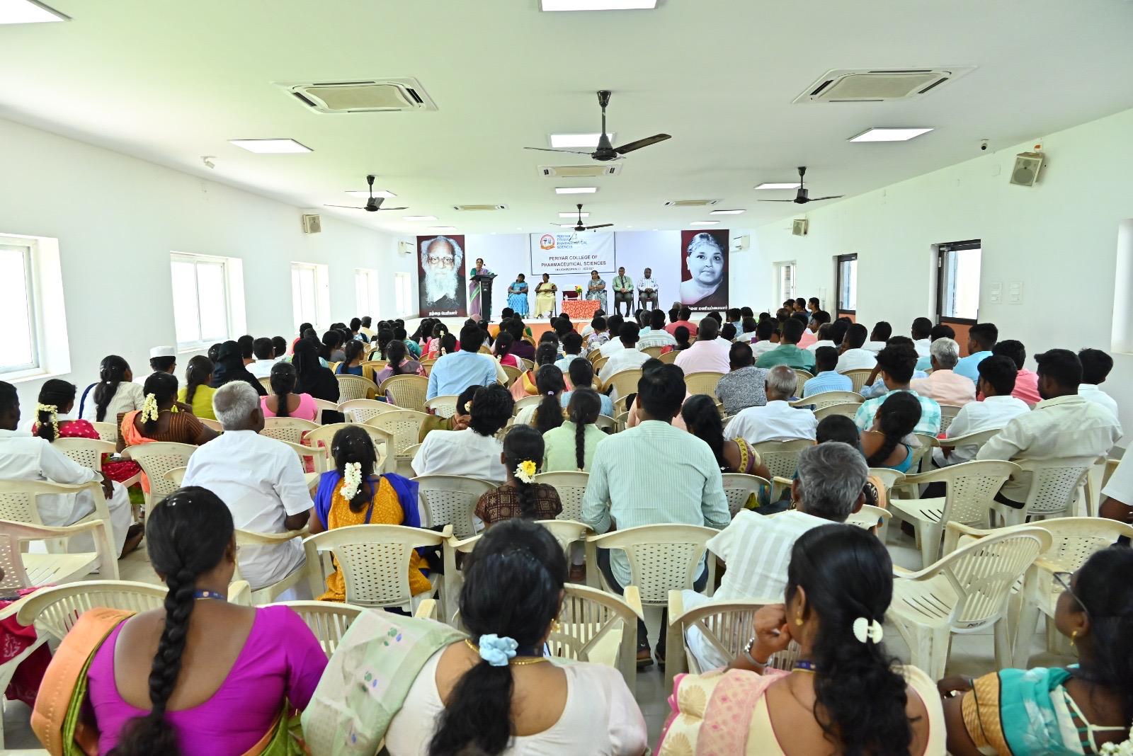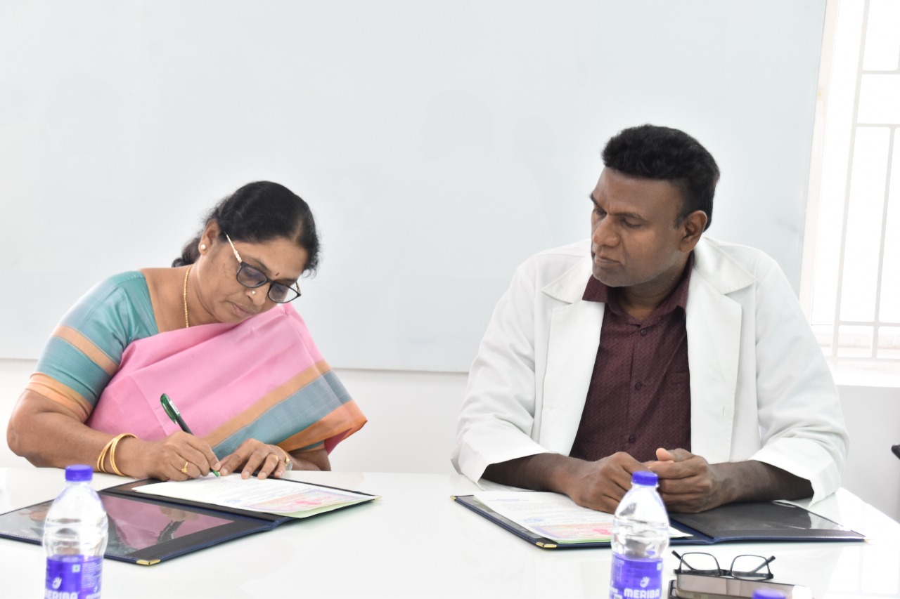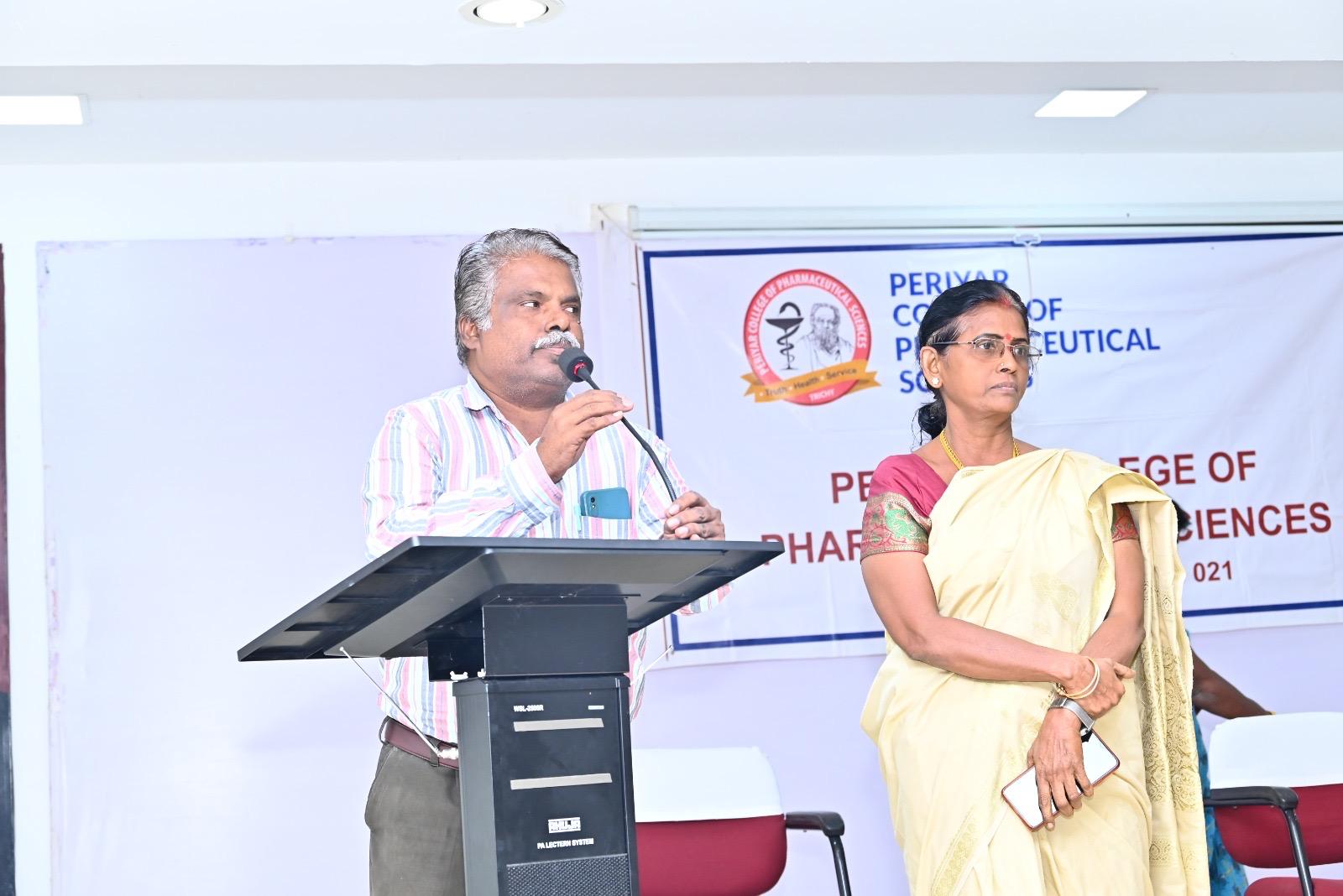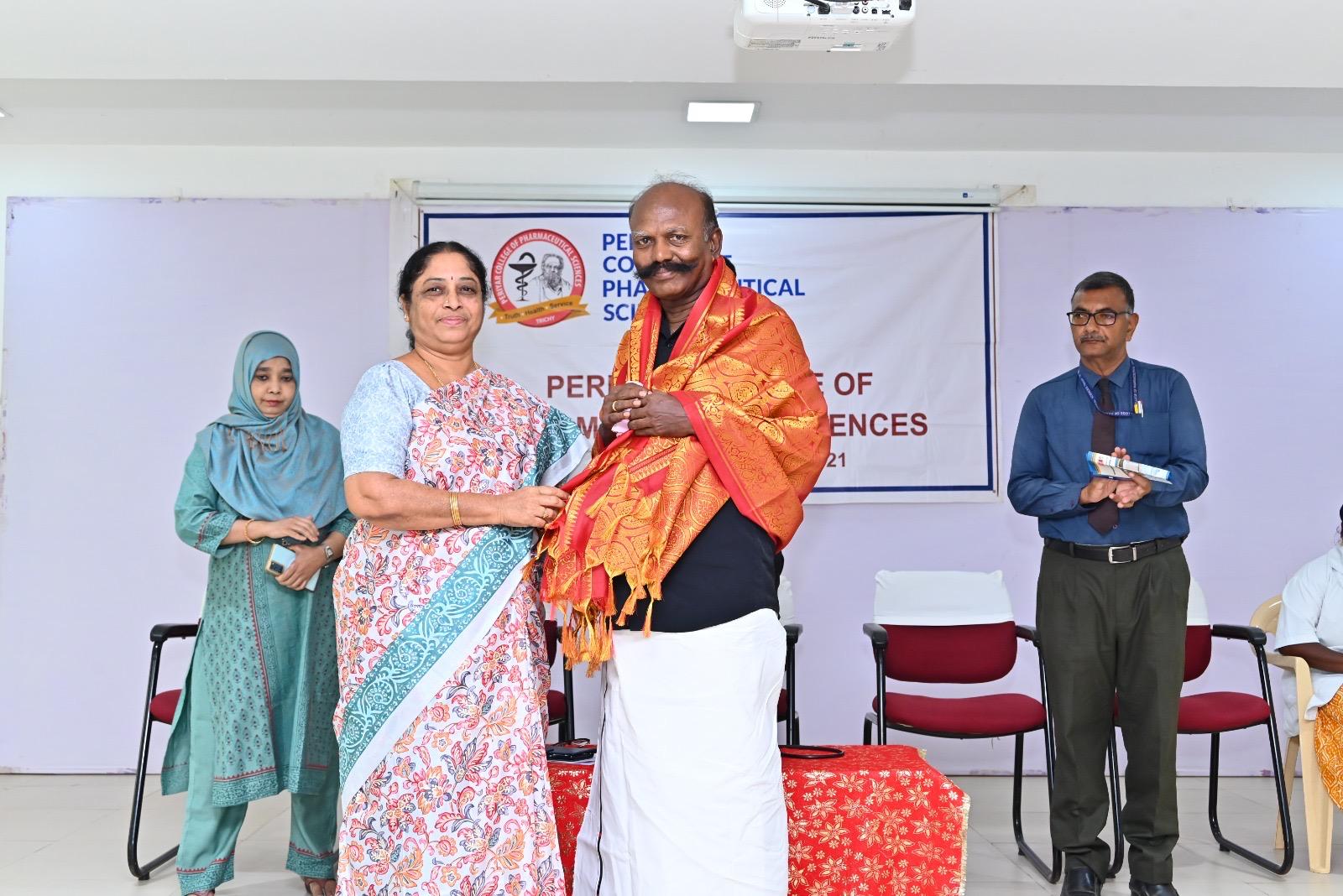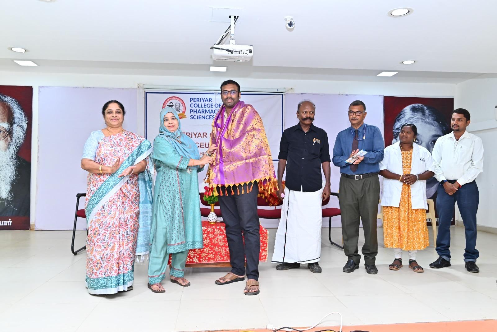 B.Pharm (VIII Sem) student M. Karthikeyan received an award from Hon’ble Health Minister Thiru. Ma. Subramanian for his oral presentation at University Research Day 2025 – ARIVELVI.